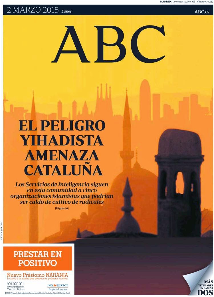 A eso le llamo yo buscar mala prensa en contra de Barcelona y Catalunya. Los del periódico mesetario habrán pensado que, a lo mejor, alguno de los 90.000 profesionales del medio entenderá la basura de portada que hoy publican... ¡Cuidado, en Barcelona hay terrorismo!
